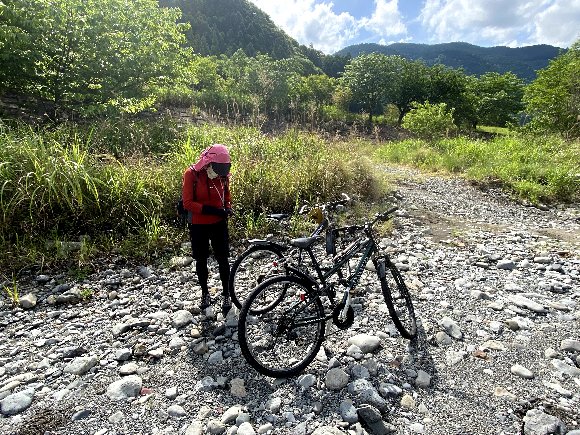ルビクンを木陰に置き、 自転車で 戻る