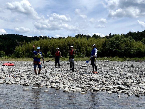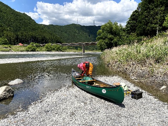 川原に降りて、 艇を降ろす。