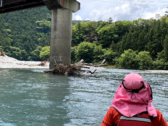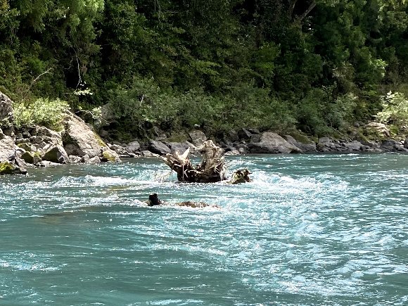 ![]() 流れの真ん中に流木あり 注意! |