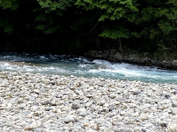 ![]() 青橋下の川原 昨年と比べ石がゴロゴロ だいぶ荒れている |