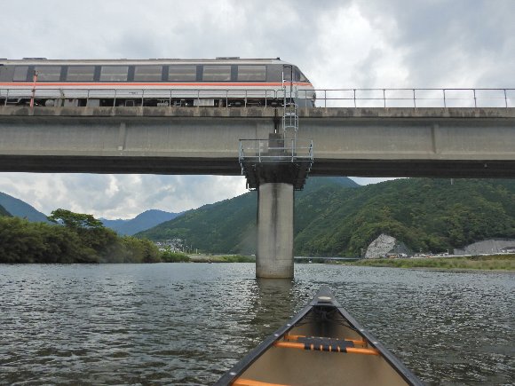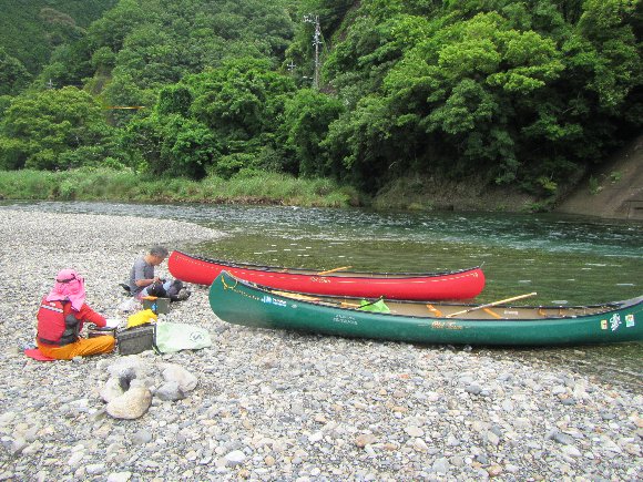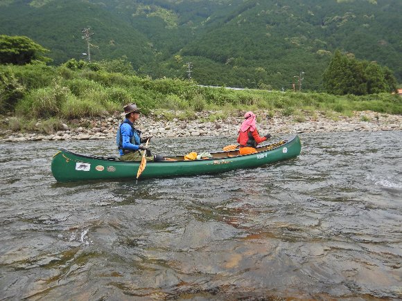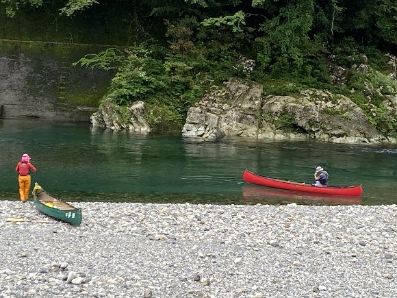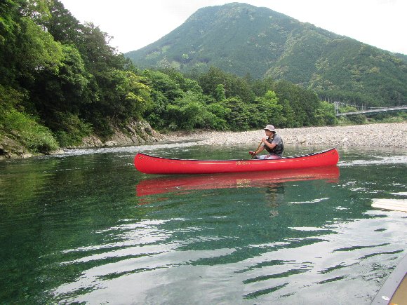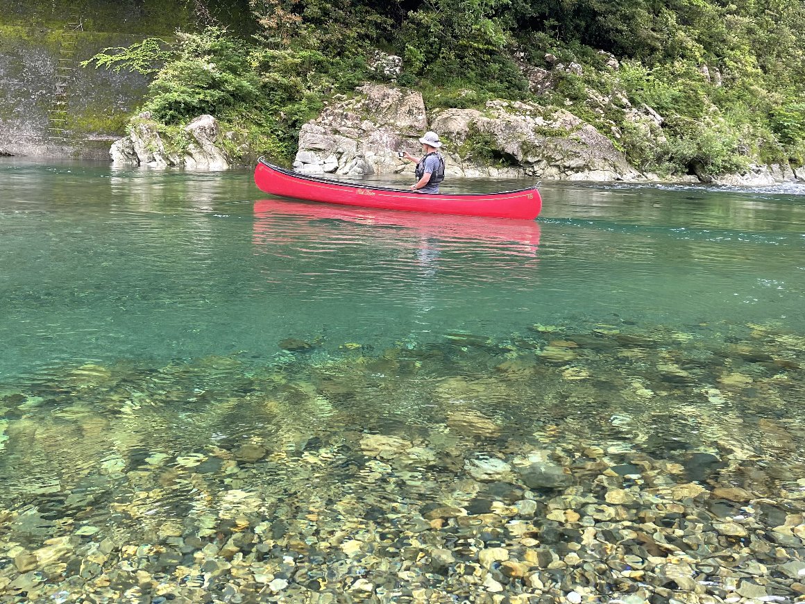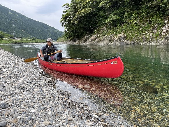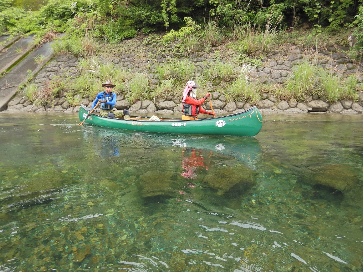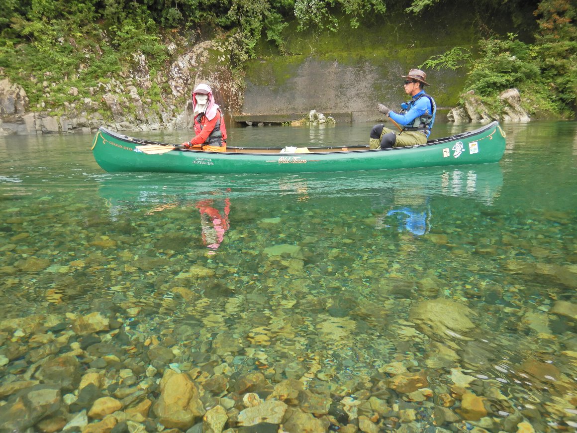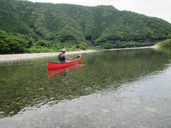 空が曇りなのは 残念だが 綺麗な川を漕ぎ出す