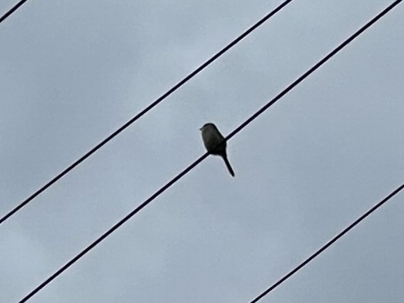 何と、電線に止まり、 姿丸見えで 鳴いているのだ!