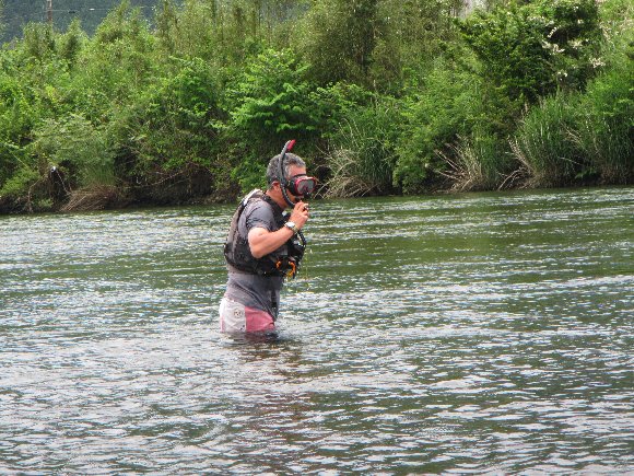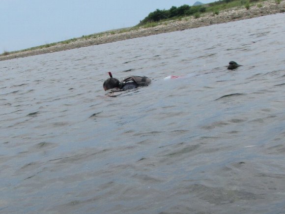 距離は短いが、 河口の ゆらゆら帯を みたい と 水中めがねも準備
