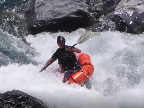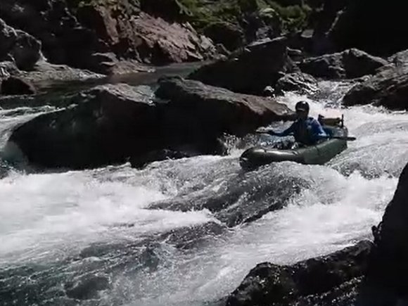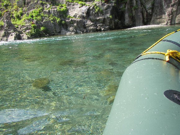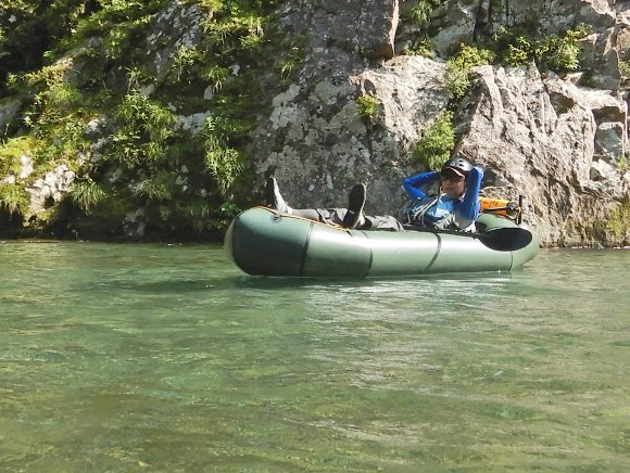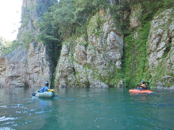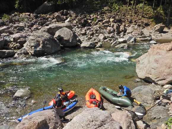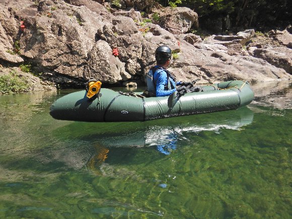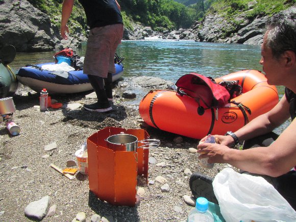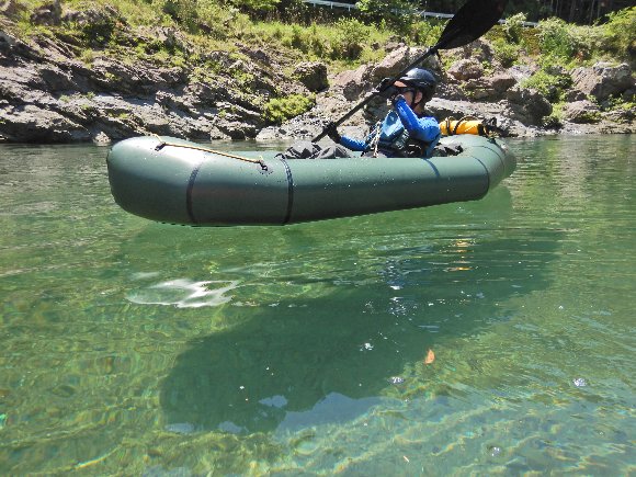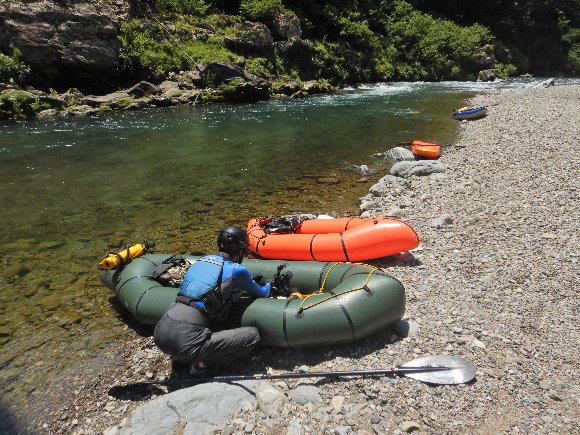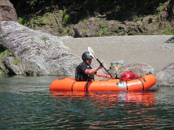 セルフベイラーのないパックラフトは、瀬を越えるたびに 上陸し 水抜きをしなくてはならないのだが、