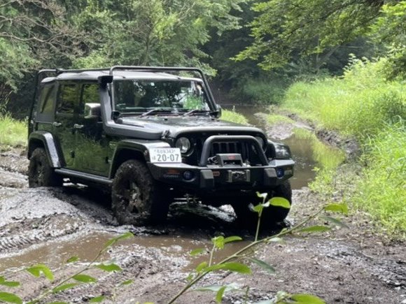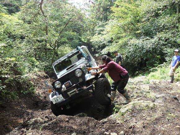 昔エスケープルートだった、斜面脇の登坂 横転しそうになる三菱Jeep |