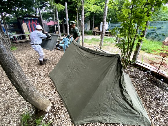 フィールド内、小屋の柱立ての予定もあったが、部材不足で後日に延期