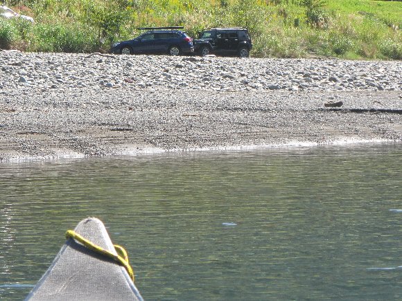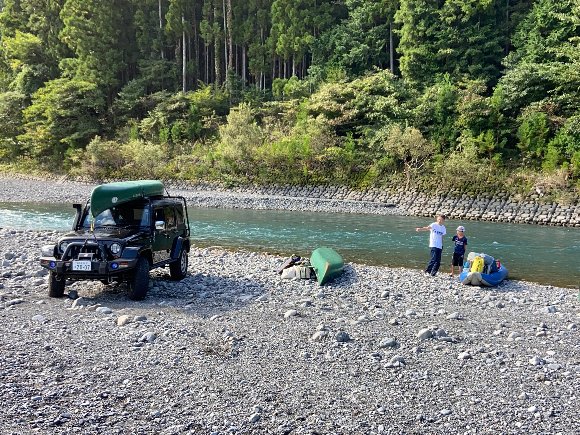 ![]() 川ギリギリまで車を進め 準備 |