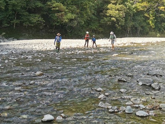 いつもの気田川 下社前の川原に 9時に集合。