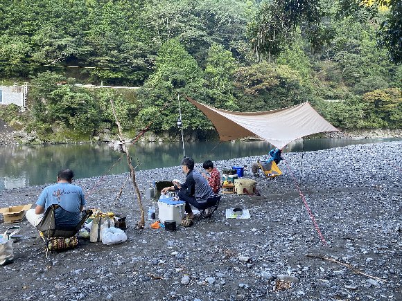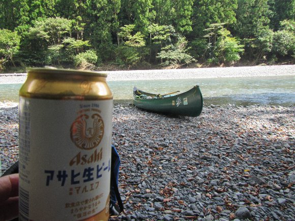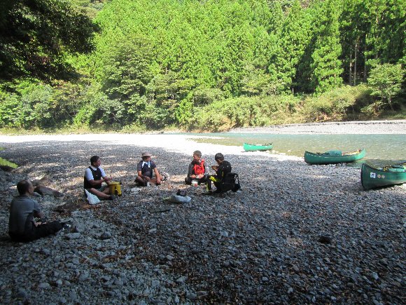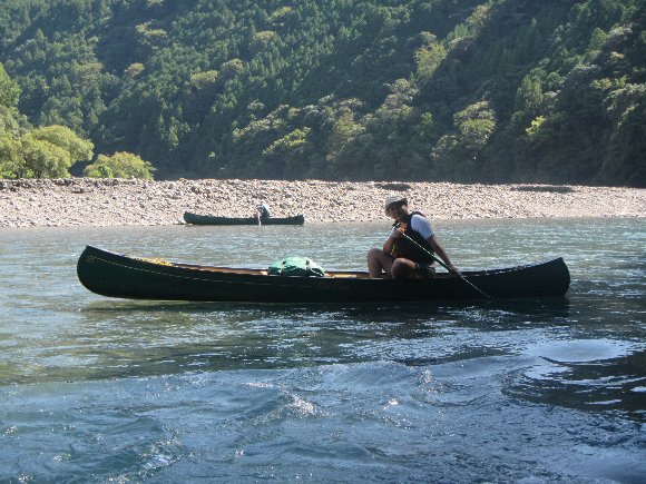 キャンプ場では無く、 カヌーにキャンプ用品を積載し 漕いでいって 川原でキャンプ (野営)