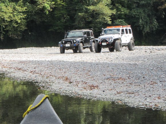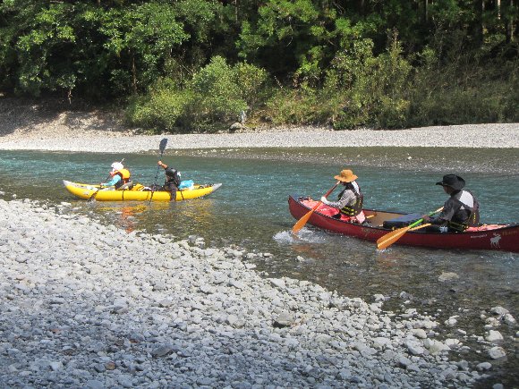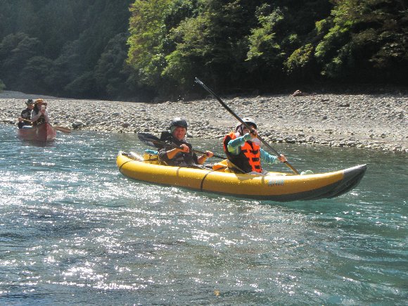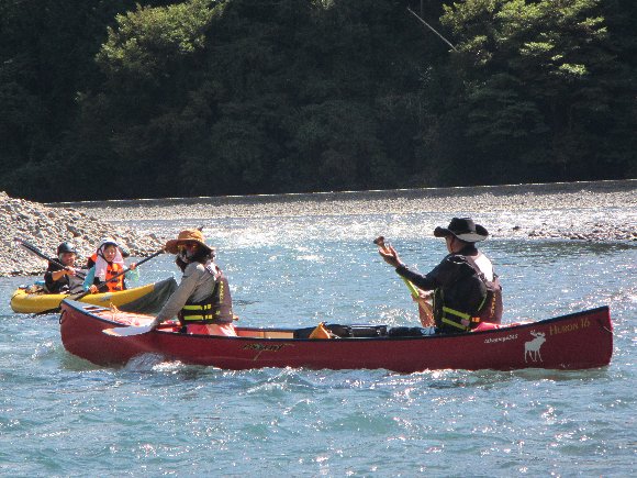 ![]() ロープでつないで、上流へ向けて ひたすら漕ぐのだ、 |