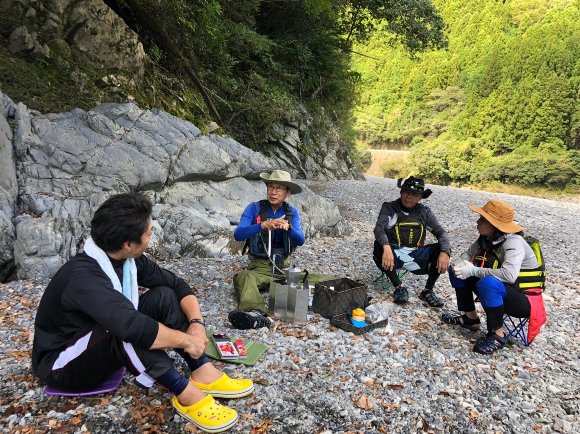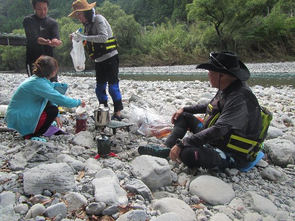 ゴール近くであるが、 笹合橋手前で ランチタイム