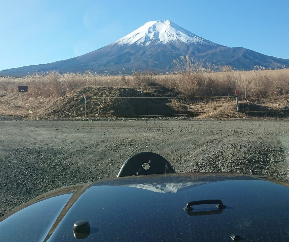 撮影者も気づかなかった ボンネットに 写る 逆さ富士 INFINITY事務局長 撮影 |