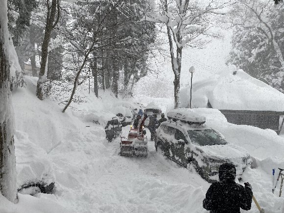 ![]() スタッフの雪かき |