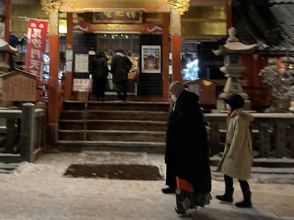 ![]() 新年 お朝事に 向かう 住職 |