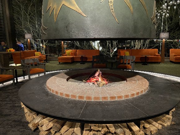 ![]() ロビーのたき火 |