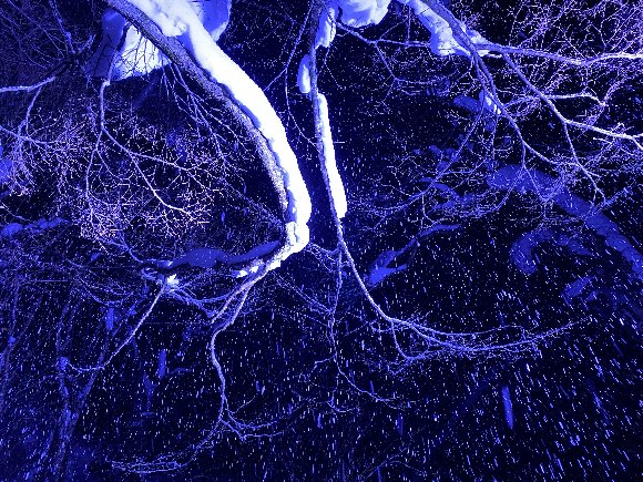 ![]() 青い光をあてた 奥入瀬の雪 |