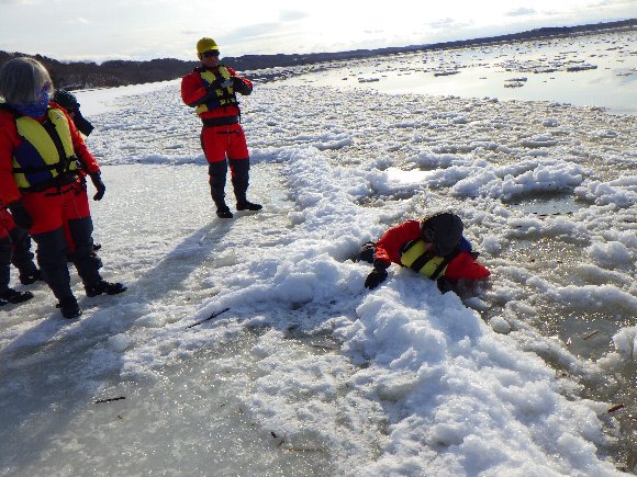 氷をかき分けて漕ぎ出す |