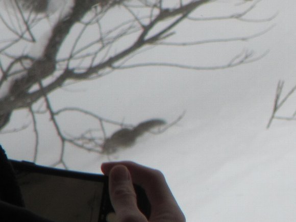 車の前を リスが走り しばらく 伴走した後、 森へはいていった。 |