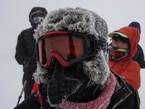 この霧は、氷霧 氷の霧で、これが風向きの方向に樹に凍り付き 巨大な樹氷になっていく。