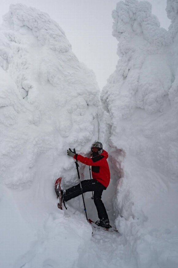 樹氷の林を歩く |
