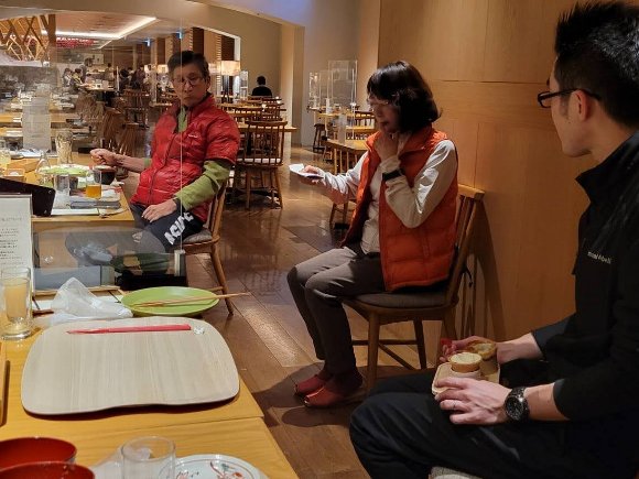 夕食後 余興、 はるカミが 落語 みそ豆を 披露 |