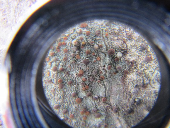 ルーペで見ると、 地衣類 (菌類 や 苔類) |