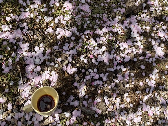 コーヒーカップに花びらが・・・・。