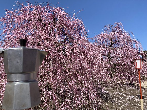 エスプレッソと 枝垂れ梅