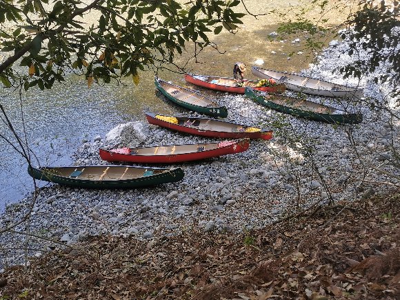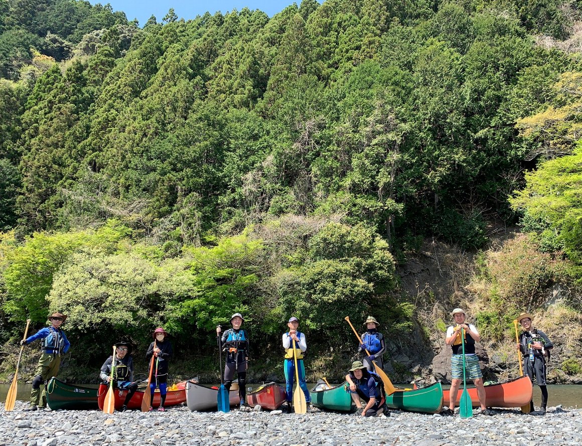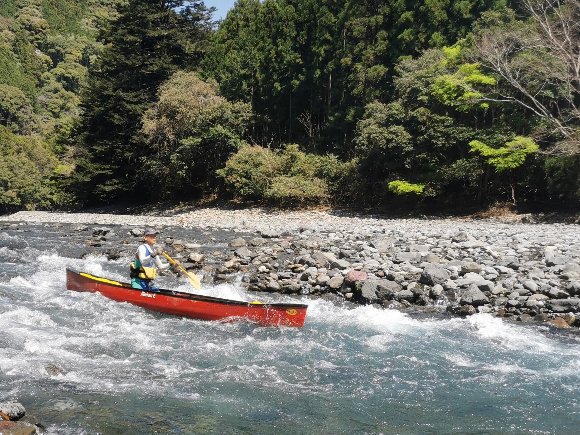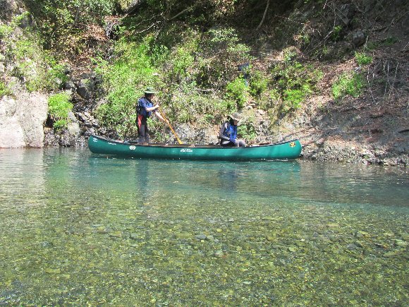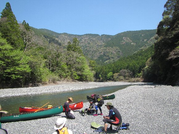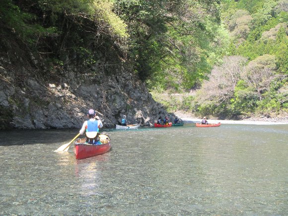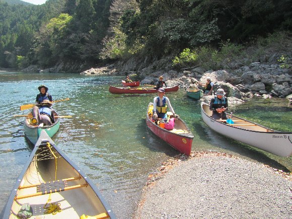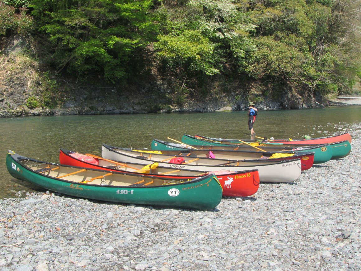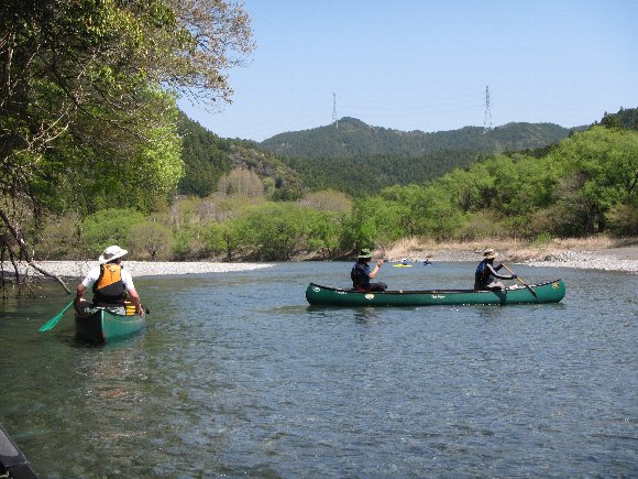 清流気田川を漕ぐ カナディアン軍団 2022.04.10 カナディアンカヌーがこれだけ並ぶのも珍しい。 |