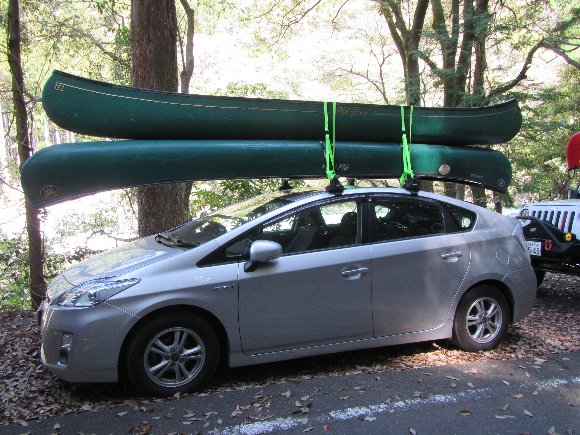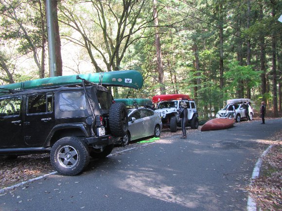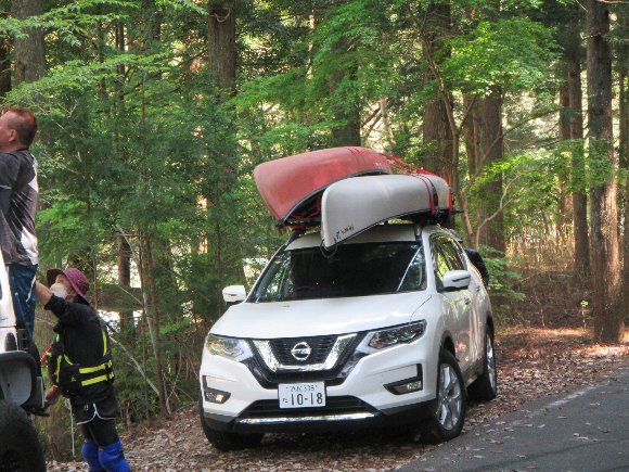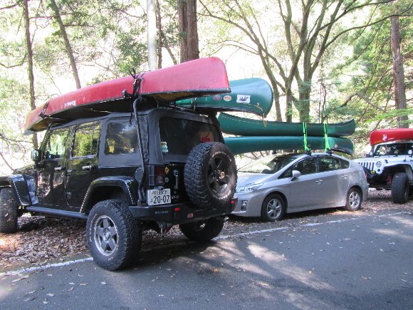 駐車スペースが少ないので漕艇後は 4台で 7艇を積載するのだ。