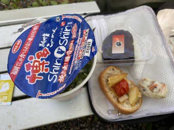 (ぼろバスへ上陸後の段差を越えるのに、荷物を減らすため、漕艇後のランチとした。)