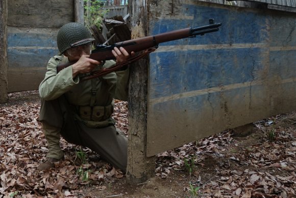 ![]() M1ライフルを射撃する 米兵 |