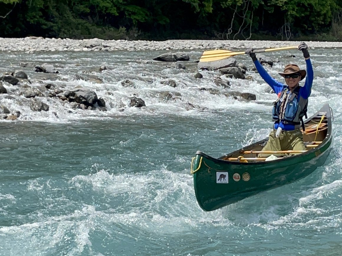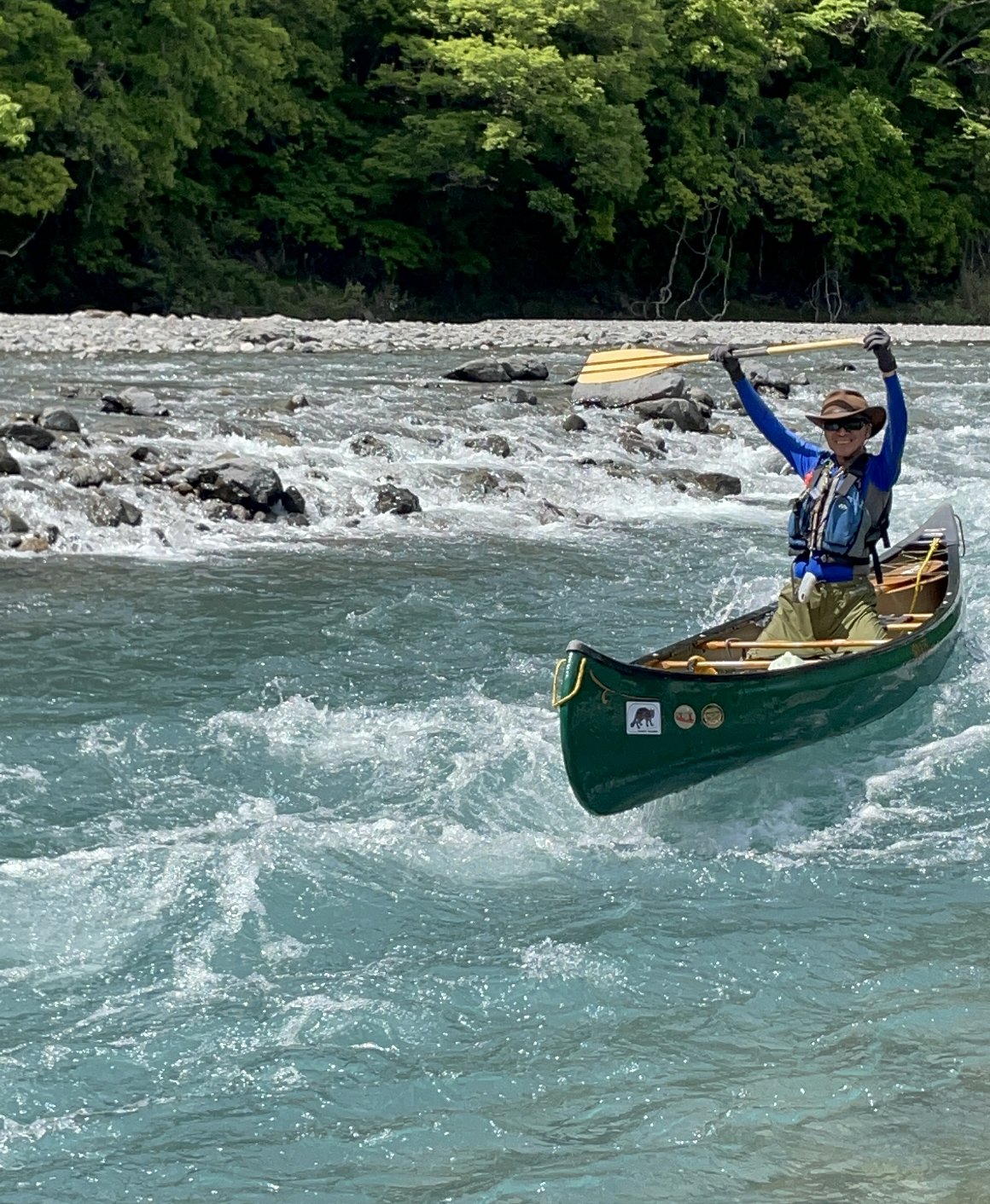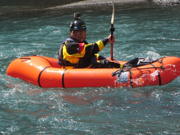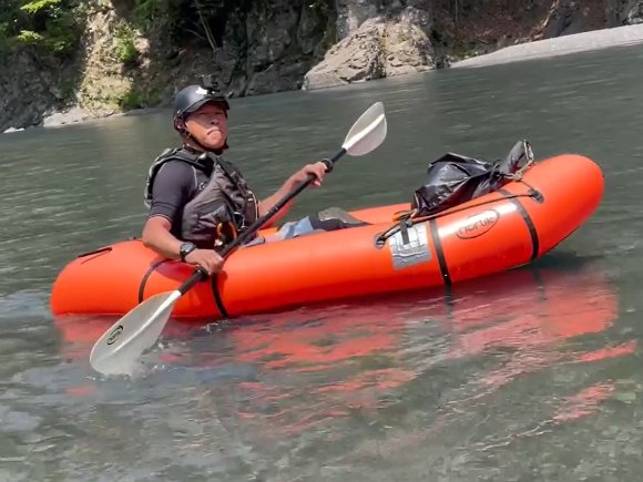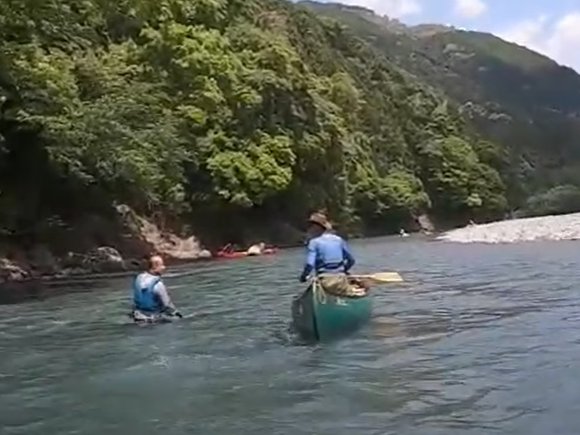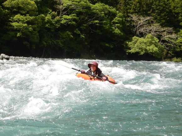 送電線の瀬を パックラフトで挑戦する みっちゃん 見事クリア 楽しそう! |