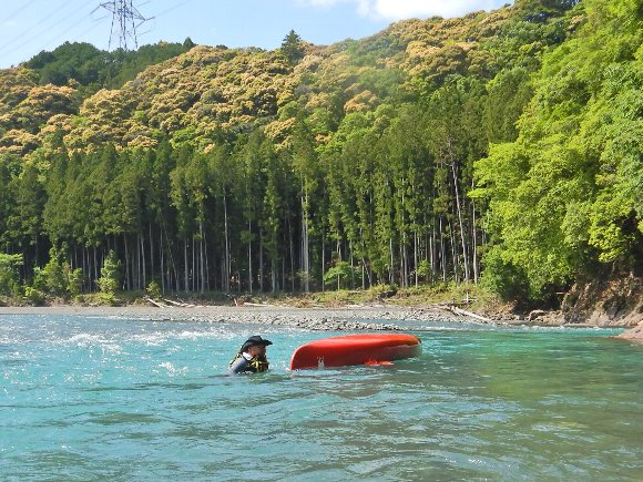 流れる艇を回収した Takapin 帽子はカヤッカーが回収してくれた |