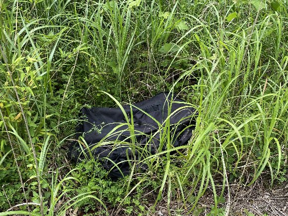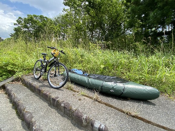 草むらに、折りたたみ自転車を ひっそりと 置き、 上流部へと 走る |