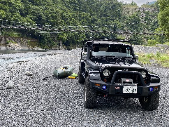 川根両国で、MyJeepに 自転車をたたんで積み込み、