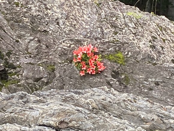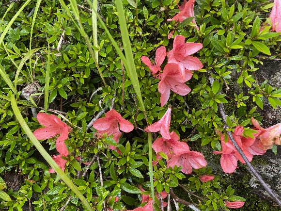 川辺は、さつきの花が咲き乱れている |