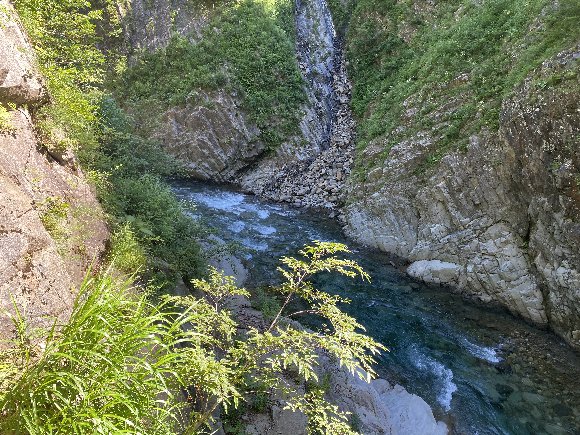 清津峡渓谷の 流れや柱状節理が 見られる |