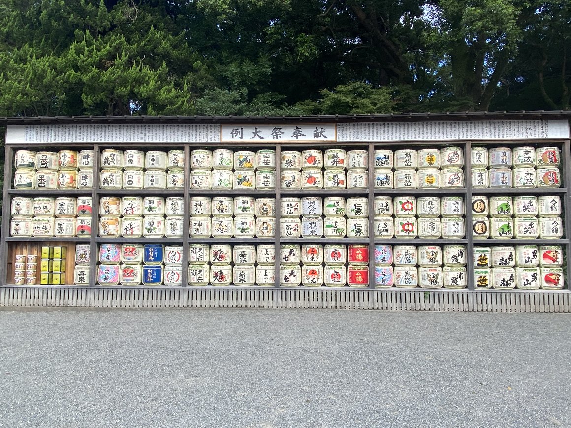 全国から 献上された酒樽 群馬 赤城山 愛知 ねのひ 木曽 七笑い 遠州 花の舞 浦霞 大七 男山 萬寿鏡 など 飲んだことのある地酒も多い(笑) |