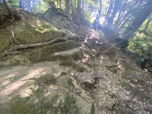 本格的な 山道を 2km以上歩き やっと 車道へと 出ることができた。