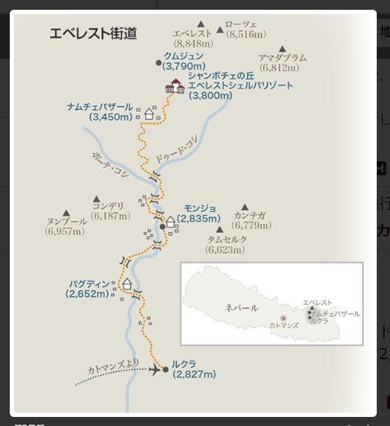 エベレスト街道 ルクラから ジャンボチェの丘までのコース(西遊旅行HPより)