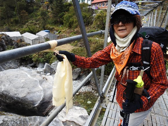お守りを 吊り橋にくくり 安全祈願 |