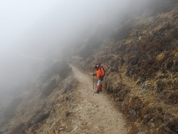 シャンボチェの丘 シェルパリゾートへもどるが ガスが出て 迷いそう・・・ 迷ってナムチェまで降りてしまった人もいた。 |