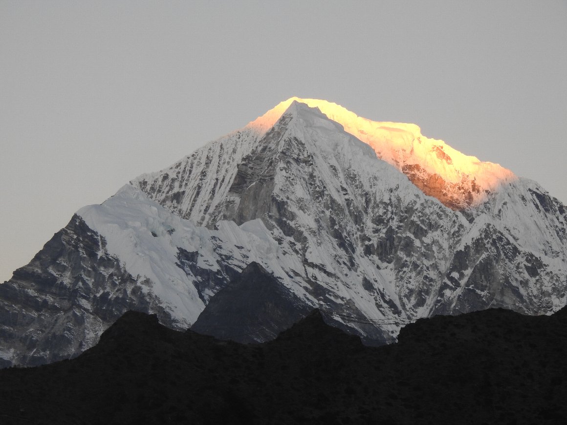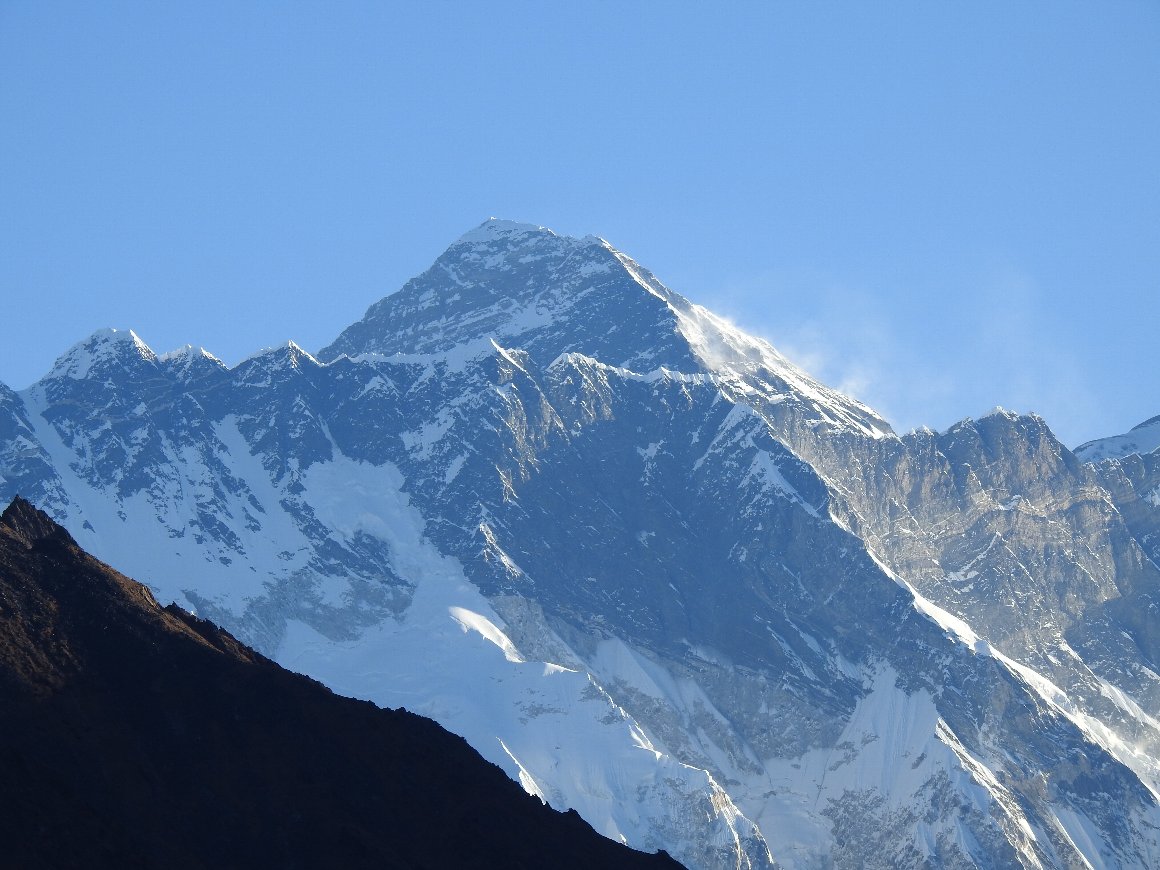 晴天、 エベレストも はっきりと 見える! 朝日を浴びる エベレスト