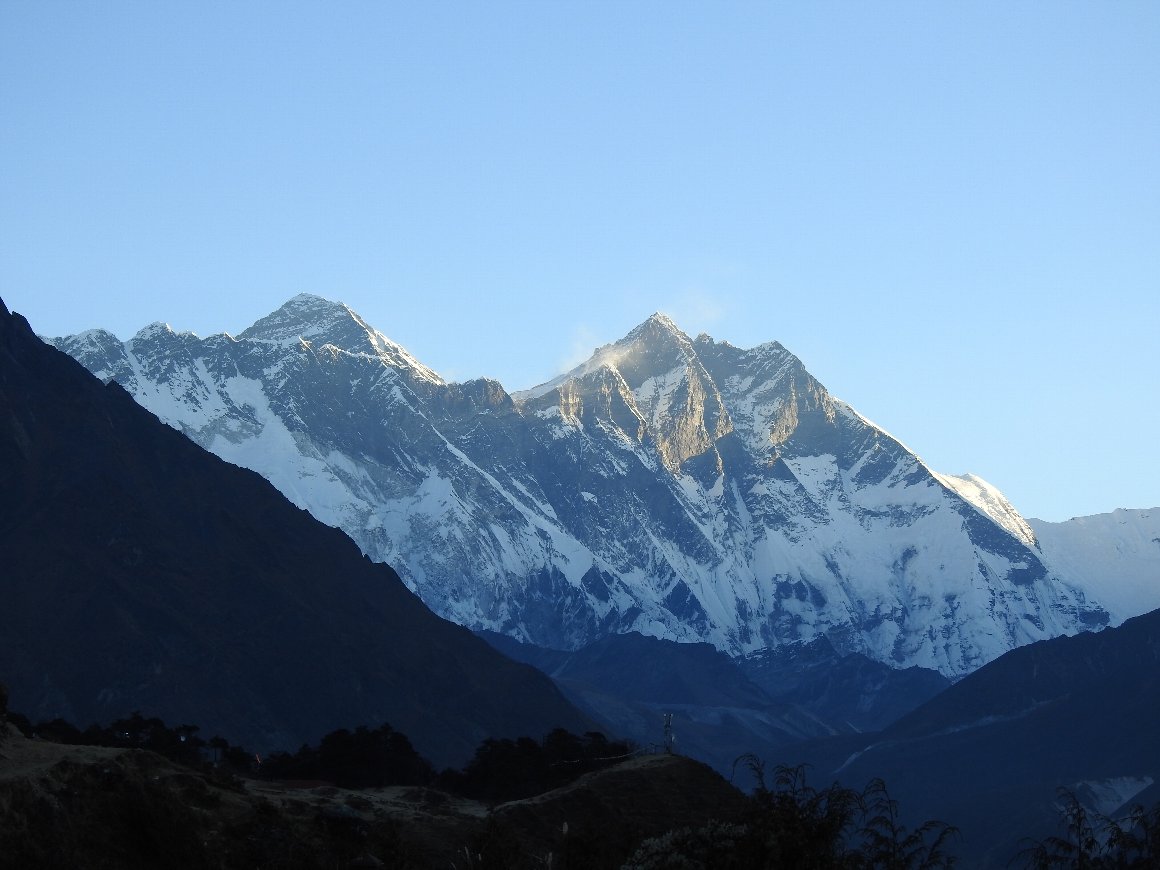 早朝の ヒマラヤ エベレスト群 の山々を 充分に楽しみ