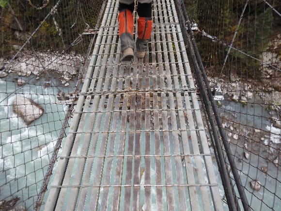 吊り橋を 何本も渡る |