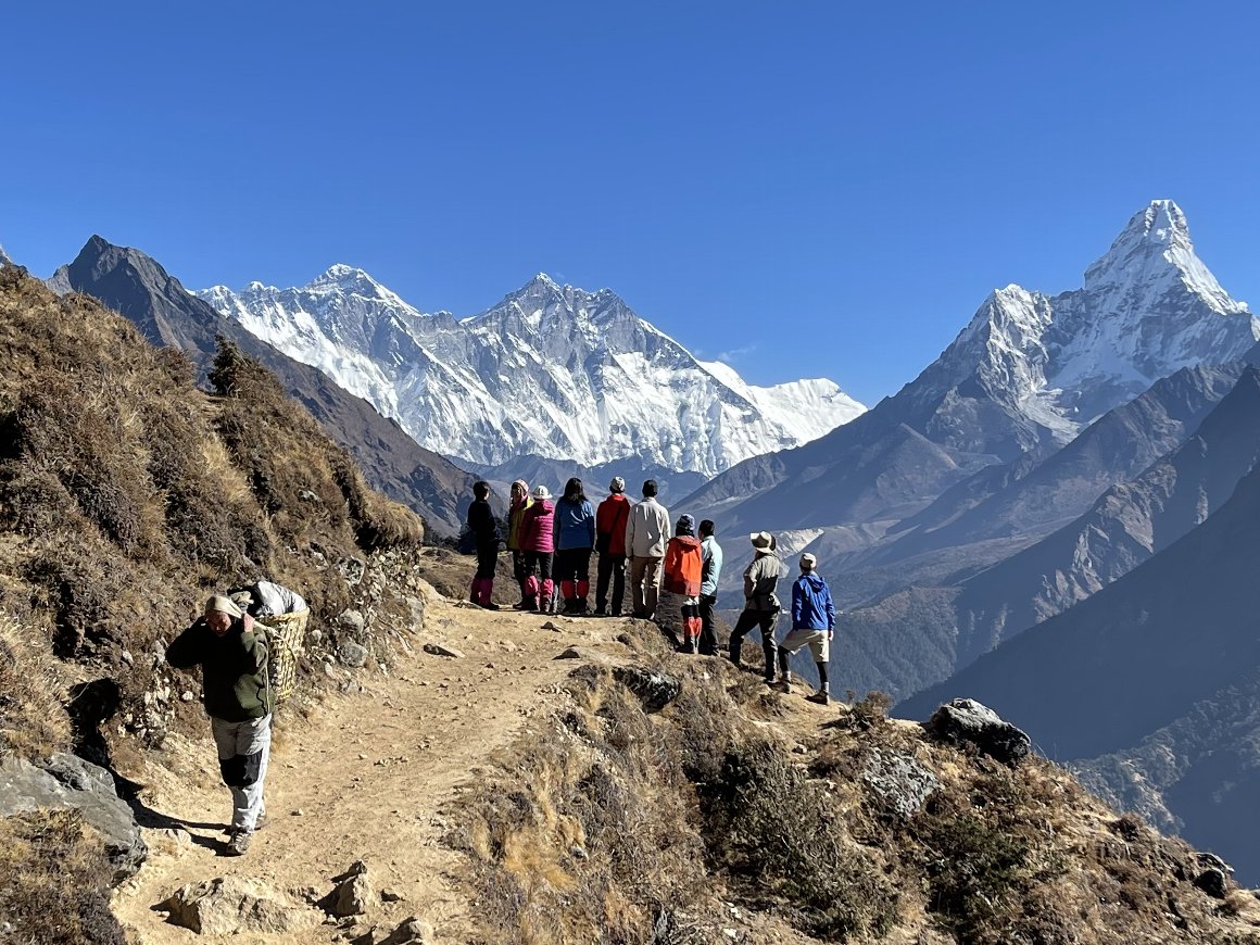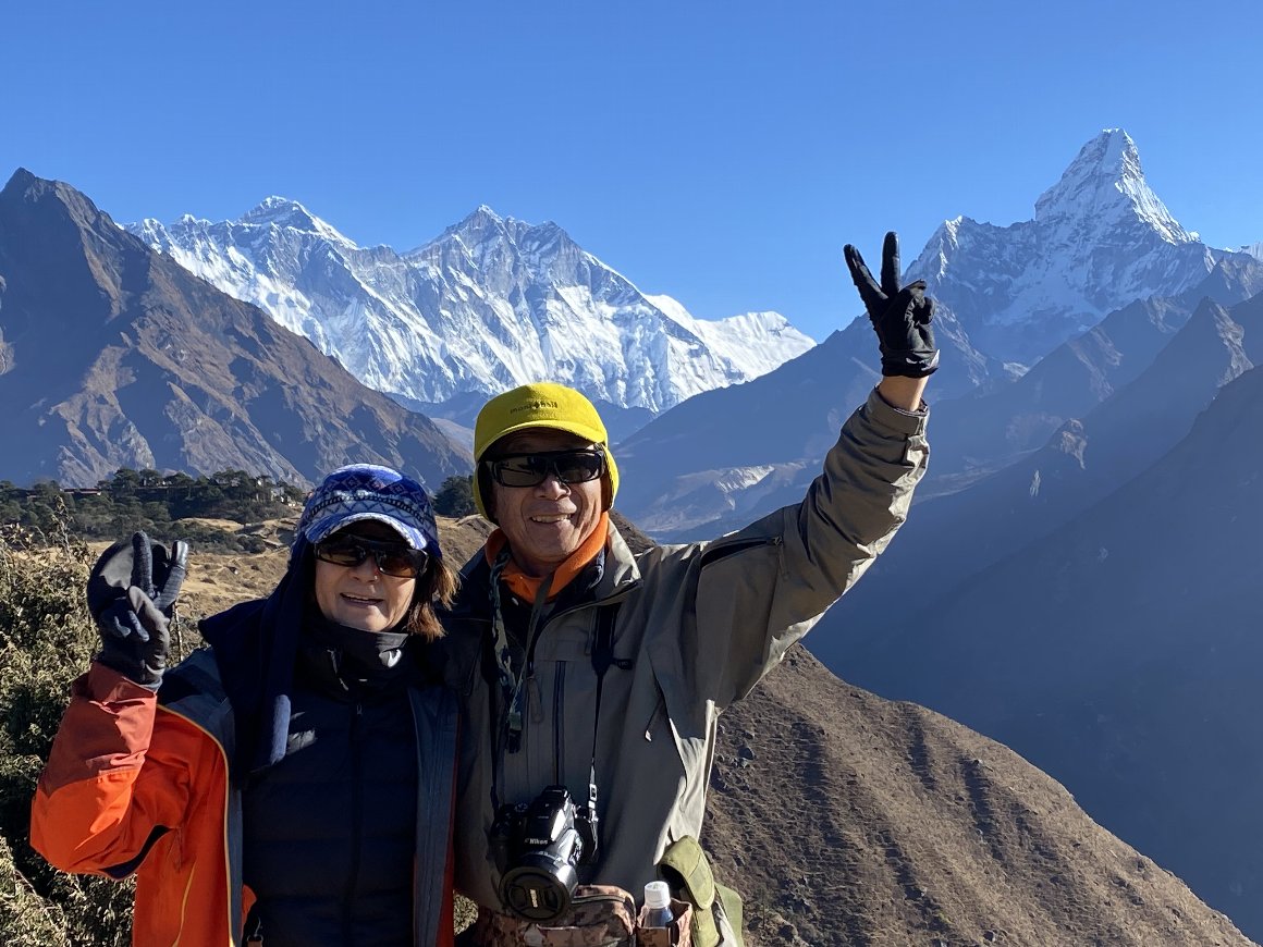 エベレスト街道トレッキング 2022.11.10-20 ジャンボチェの丘(3.800m)から エベレストを眺める |