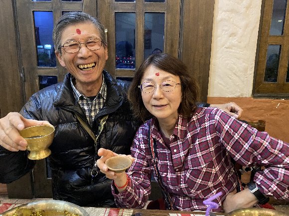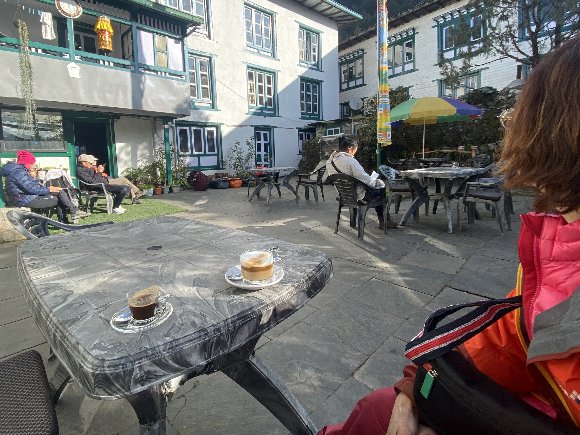 テラスで お茶を飲んだが この日は エベレストは見えず