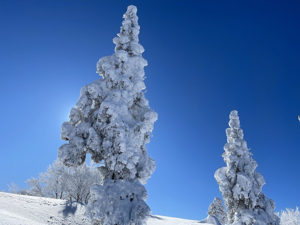 青空に 樹氷 陽光 がまぶしい |