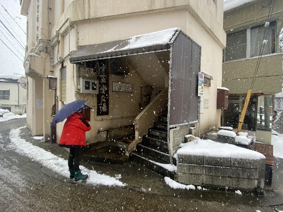 雪降る中 外湯巡りへ